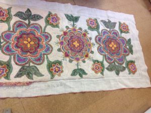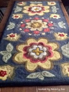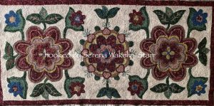 From the beginning, Cape May was a popular pattern in different colorwaves. A large rug 37 1/2 x 67 but not “room size.” Rug hookers today customize the pattern to suit their individual color palettes and needs.