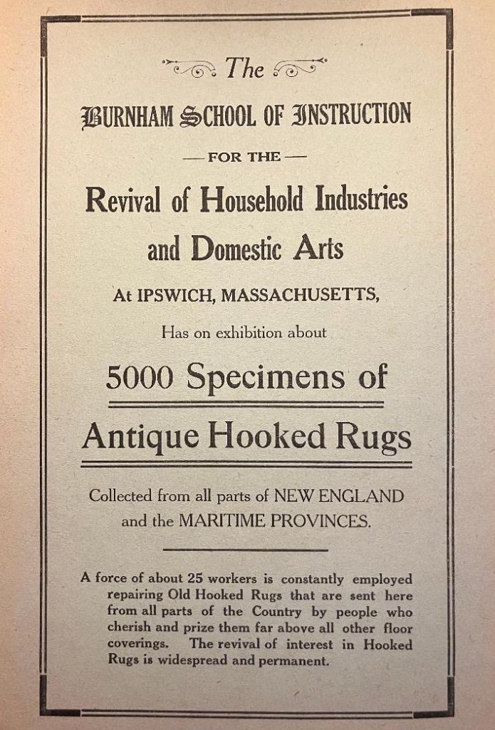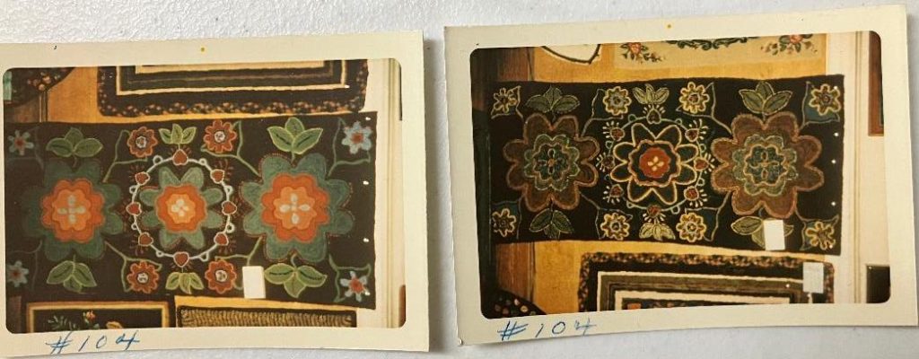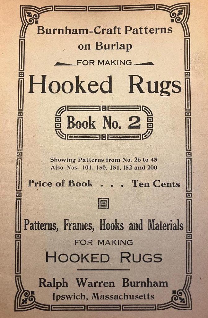 No. 104 was actually a Ralph Burnham pattern (one of my heroes in rug hooking) and first came into one of his catalogs in the very late or very early 1900’s. Here is a picture of the front and back of one of his early catalogs.