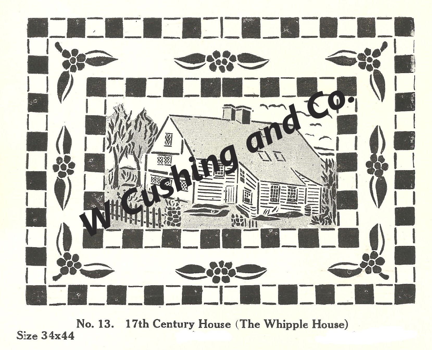 This wonderful rug inspired by hand crafted treasures of the times is just wonderful to hook using any color palette, especially neutrals or what is leftover in your stash! 17th Century House, 34″ x 44″, Ralph Burnham Pattern No. 13, a fantastic rug and one to add to your collection to hook! Also known as the Whipple House.  In retirement, Ralph Burnham and his wife were the caretakers of the Whipple House, owned by the Ipswich Museum.