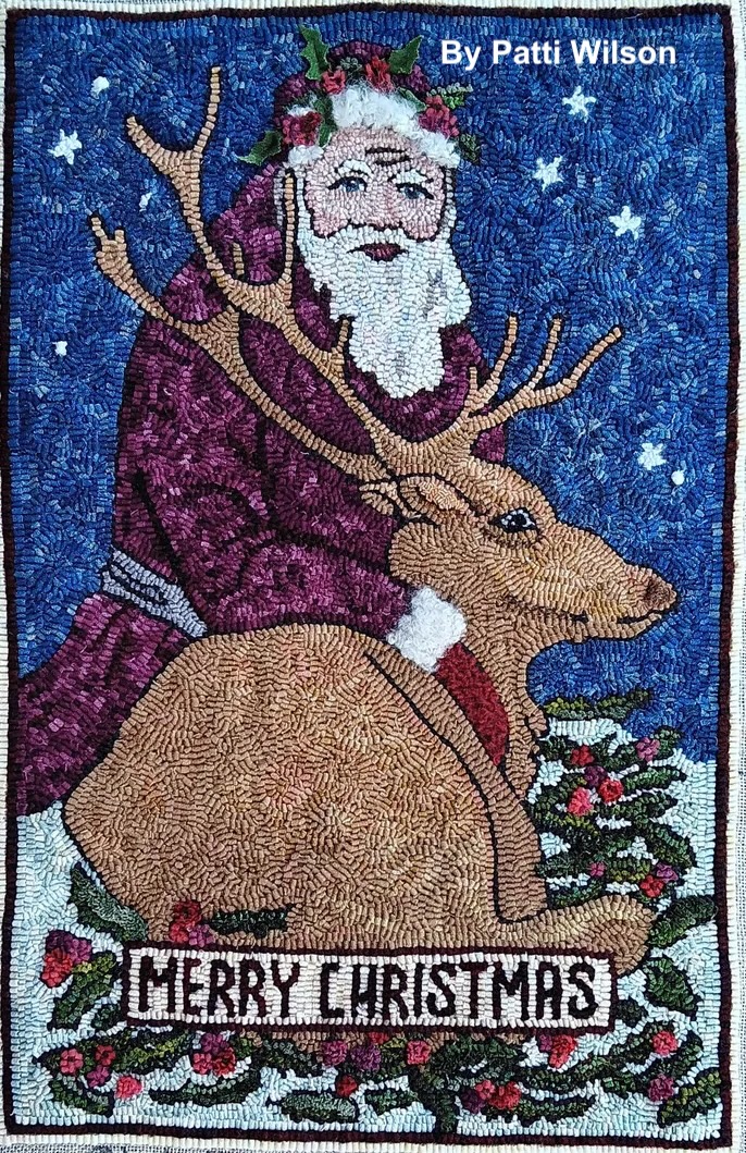 2023 Santa– Mr. Claus and Comet, Vintage Postcard Pattern From Joan Moshimer’s Studio 26 x 16