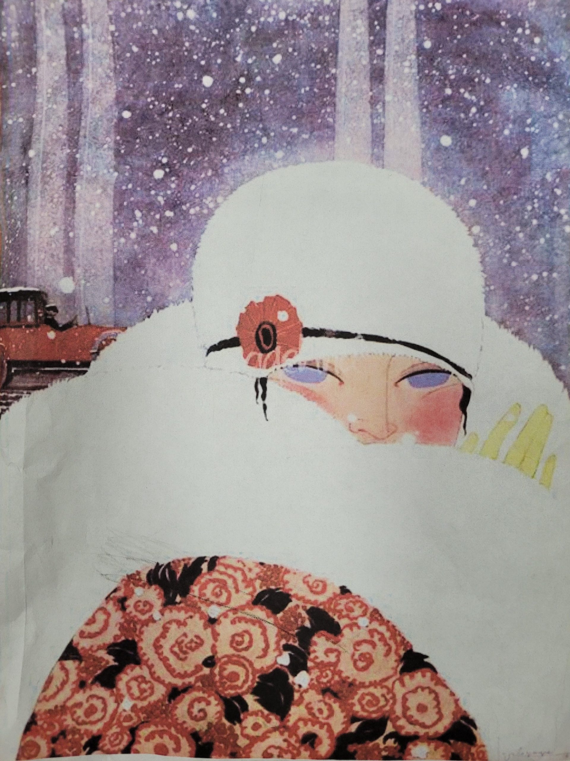 Steppin’ Out, Deco Vintage Postcard, 20 x 26. Embellishments are fun to add, such as Arctic Rays or Metallic Yarn for a 3D effect.