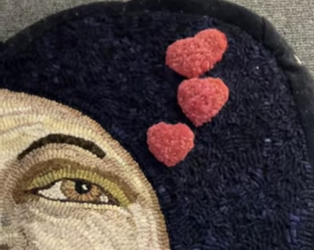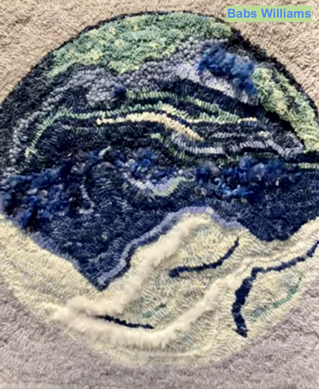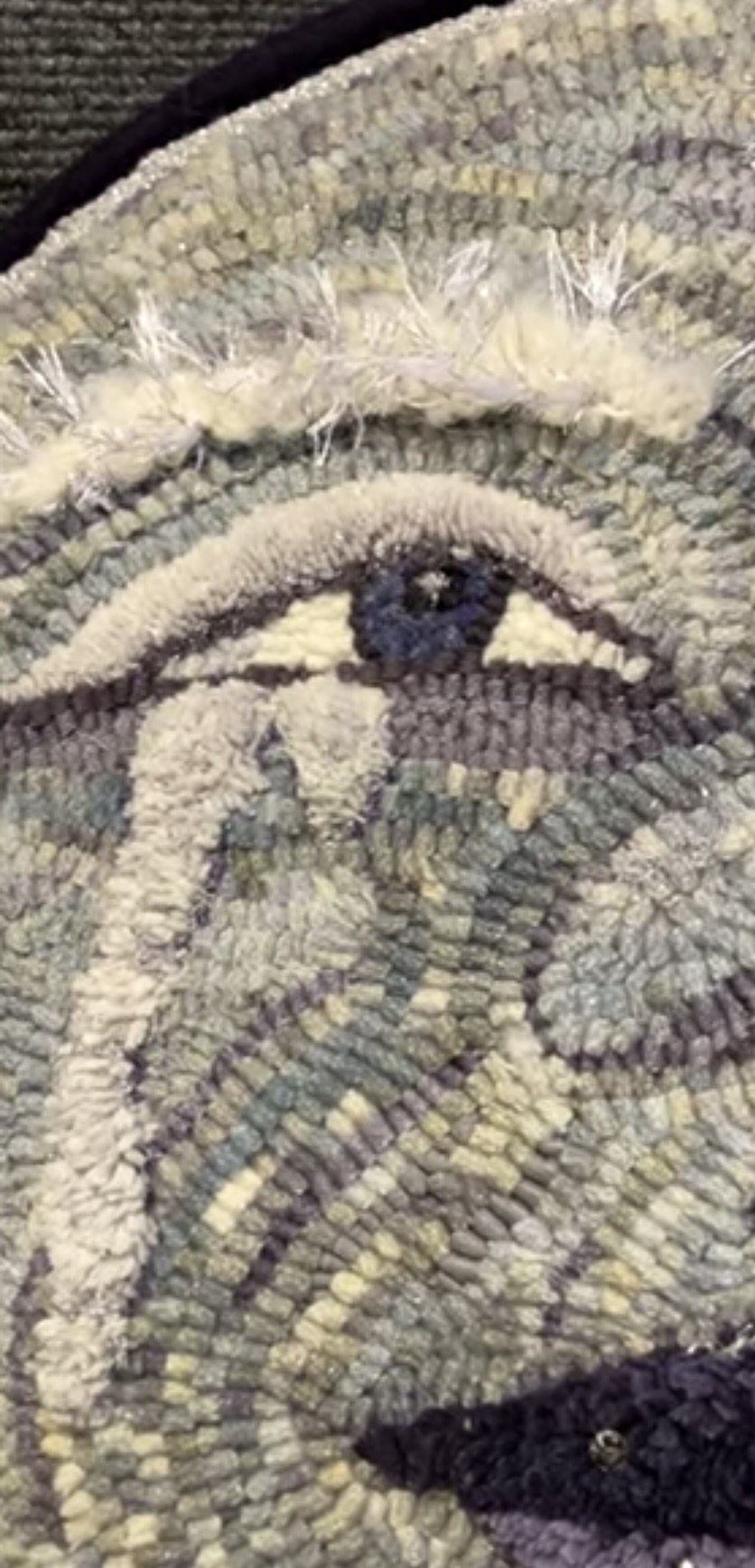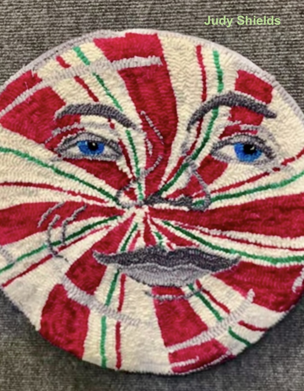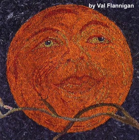 By the Light of the Moon, the Moon pattern is 15″ round. It was featured at Sauder Village Rug Show 2024. Teacher Lisanne Miller.