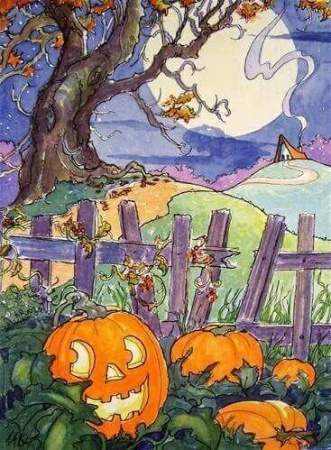 A Storybook Halloween Cottage Series, based on the artwork of Alida Akers, 30 x 20