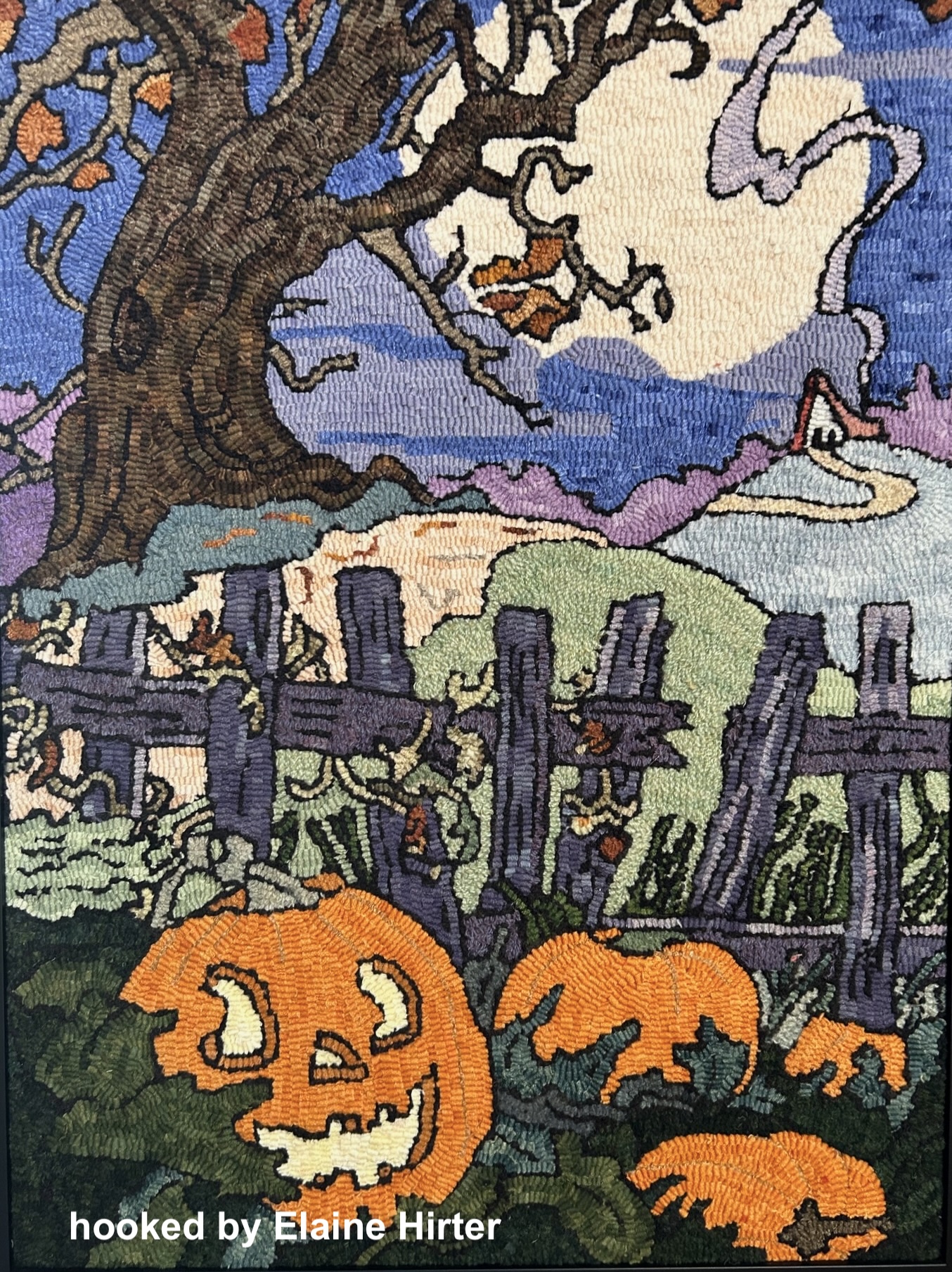 *Our example hooked by Pam Springer…she altered her pumpkin.  Another by Elaine Hirter