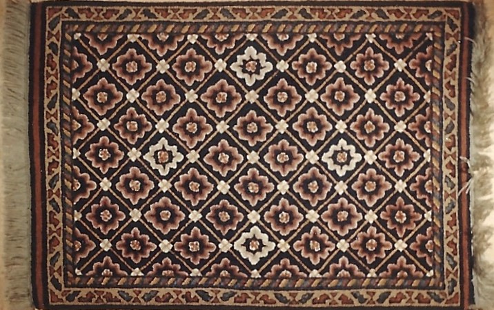 This is also available in a larger size…see our website(pictured also). Please Note–the photos of these rugs are from the notebooks and archives of Joan Moshimer. There are no names of who hooked the rug.
