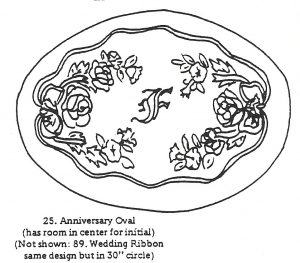 Anniversary Ribbon Oval #25, 24 x 32 based on the artwork of Jeanne Fallier. This pattern is available in another size–see separate listing