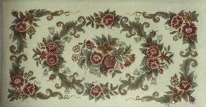 This wonderful floral rug, Antique by Pearl McGown OSV-SD 5 32″ x 61″. *Embellishments such as Velvets, Arctic Rays, Fur, Roving, Burly Spun or Metallic Yarn for a 3D effect to add to your pattern!