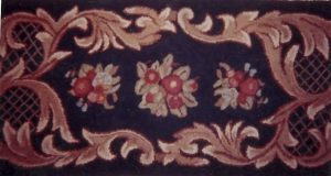 Please Note–the photo of this rug is from the notebooks and archives of Joan Moshimer. There is no name of who hooked the rug. Our featured rug example is by Ruth Poole.