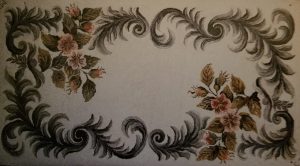 This beautiful rug is Belmont Scroll by Pearl McGown OSV 87 36″ x 68″ . *Embellishments such as Arctic Rays, Fur, Roving, Burly Spun or Metallic Yarn for a 3D effect to add to your pattern! Perfect way to be creative! Suggested dyed wools are Verdigris, Soft As Petals, any of our Imari dyed wools and more! Mix Textured wool with Dyed wool for a complete look. Please click the link to view all our in-stock textures. https://dev.wcushing.com/product-category/textured-wool/