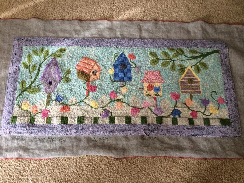 Birdhouses M432 20 x 45 by Joan Moshimer. Fun to use velvet, metallics, burly spun yarns and your stash! Some beautiful wool to check out are Cupid’s Blush, Vintage Valentine, Twinkle, Imari Jade, Amethyst, Frosty and more! Mix Textured wool with Dyed wool for a complete look. Please click the link to view all our in-stock textures. https://dev.wcushing.com/product-category/textured-wool/