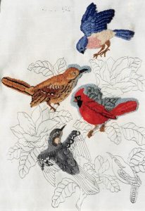 Birds of Bonclarken M228 by Joan Moshimer 24″ x 32″. Embellishments are fun to add, such as Arctic Rays or Metallic Yarn for a 3D effect. Some dyed wools to try are Valentino, Best of Blue, Winter Grays, Imari Jade, Hummingbird and more! Mix Textured wool with Dyed wool for a complete look. Please click the link to view all our in-stock textures. https://dev.wcushing.com/product-category/textured-wool/