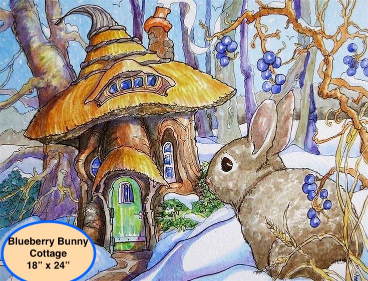 Blueberry Bunny Cottage based on the artwork of Alida Akers, 18 x 24