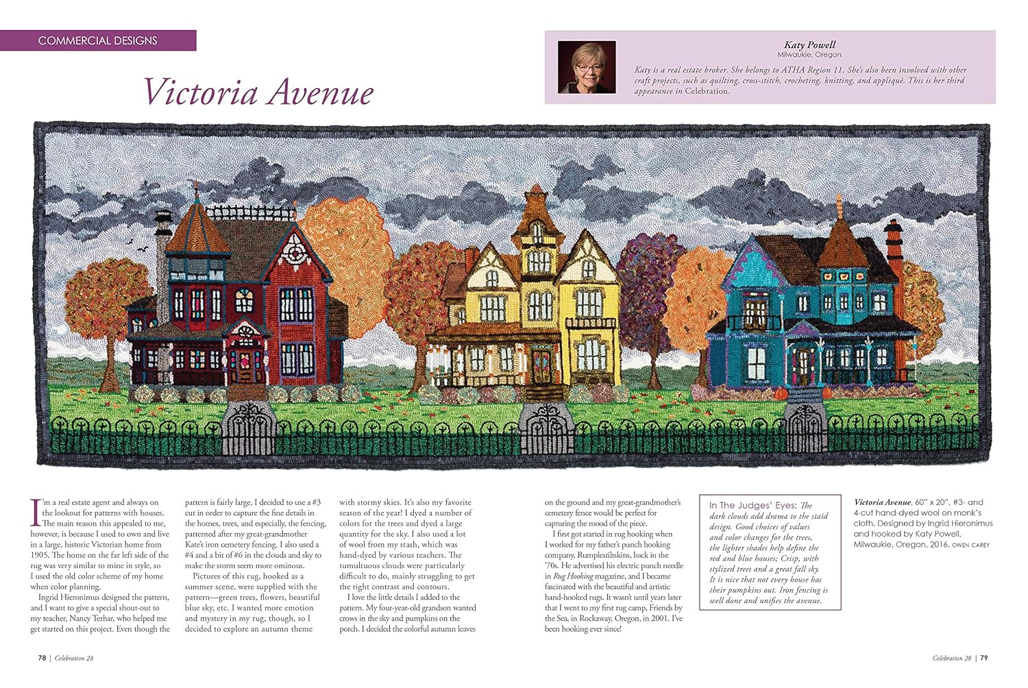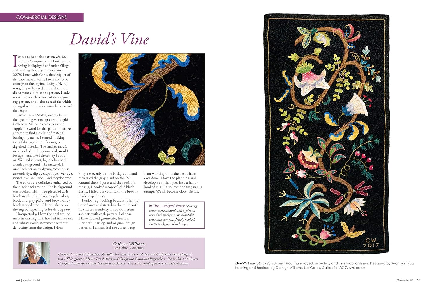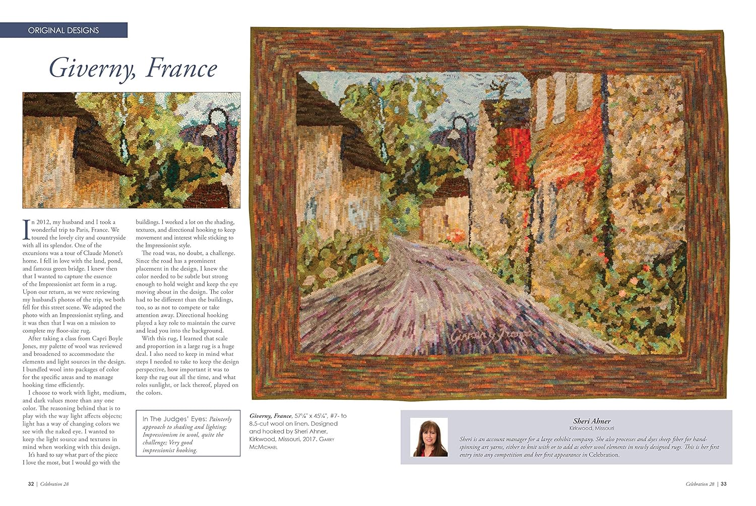 International juried exhibit of the year’s best hand-hooked rugs – 69 beautiful hooked rugs – 59 close-up details – Includes both traditional and original rugs Each year, expert judges choose the best hand-hooked rugs from the many rugs entered into the annual juried competition known as Celebration. Now in its 28th year, the competition showcases rugs from all over the US, Canada, and from around the world. Each winning rug is presented in a full-color spread that includes a photo of the rug, a close-up detail highlighting fine workmanship, and comments from the artist and the judges. Celebration is eagerly awaited each year and is overflowing with inspiration for all who are interested in fiber arts.