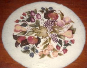 Bounty Round OSV 658, a Pearl McGown pattern, 28″ round. Beautiful berries in any color scheme. Embellishments are fun to add, such as Arctic Rays or Metallic Yarn for a 3D effect. This is a very unique round pattern. We have a large array of greenery and fruit colors from our dyed wool collection to make your creation realistic. Wools such as Bowl of Cranberries, Imari Lime, Jacob’s Peach, Purple Passion, Raspberry Burst and more! Mix Textured wool with Dyed wool for a complete look. Please click the link to view all our in-stock textures. https://dev.wcushing.com/product-category/textured-wool/