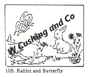 Bunny and Butterfly #105, 24 x 36 based on the artwork of Jeanne Fallier.  *Embellishments such as Arctic Rays, Fur, Roving, Burly Spun or Metallic Yarn for a 3D effect to add to your pattern!  Great wools to use are Mother of Pearl, Monet’s Garden, Viola, Perky Pansy and Gull.  Great pattern and the rabbit can be in any color!  Mix Textured wool with Dyed wool for a complete look.  Please click the link to view all our in-stock textures.  https://dev.wcushing.com/product-category/textured-wool/