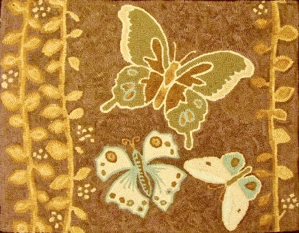 W. Cushing is proud to have Nola Hooks and Cactus Needle patterns! Butterflies and Vines, Pattern by Cactus Needle, 23 1/2″ X 30″. *Embellishments are fun to add, such as Arctic Rays or Metallic Yarn for a 3D effect. Try our dip spots hand dyed wool for shading effects. We have a large variety of hand dyed wools for your rug such as Imari Rose- Taupe, Jacob’s Gold, Wild Grape, Brown and more! Mix Textured wool with Dyed wool for a complete look. Please click the link to view all our in-stock textures. https://dev.wcushing.com/product-category/textured-wool/