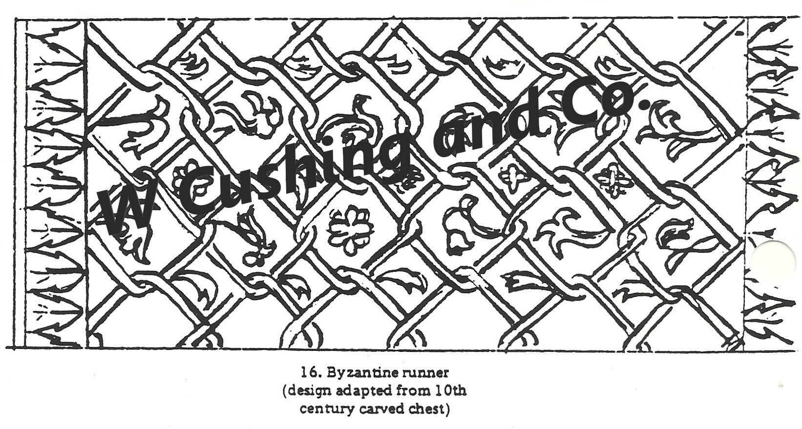 Byzantine Runner #16, 12 x 14 based on the artwork of Jeanne Fallier. Design adapted from 10th century carved chest. A great stash reducer! Some suggested dyed wools are any of our Imari collection or even our Vintage Heritage series. *Embellishments such as Arctic Rays, Fur, Roving, Burly Spun or Metallic Yarn for a 3D effect to add to your pattern! Perfect way to be creative! Mix Textured wool with Dyed wool for a complete look. Please click the link to view all our in-stock textures. https://dev.wcushing.com/product-category/textured-wool/