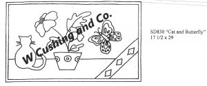 Cat and Butterfly Pattern by Salma Dhanji SD830 17.5 x 29 inches.   A great pattern to get creative with.  *Embellishments such as Arctic Rays, Fur, Roving, Burly Spun or Metallic Yarn for a 3D effect to add to your pattern!  Perfect way to be creative!  Wonderful dyed wools to use are any of our Vintage Color series, Biddeford Pool, Amethyst and more!  Mix Textured wool with Dyed wool for a complete look.  Please click the link to view all our in-stock textures.  https://dev.wcushing.com/product-category/textured-wool/