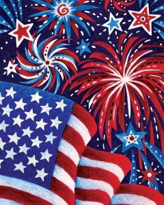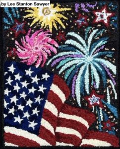 Celebration!, 18 x 22.5 – Great Summer Pattern! Wonderful Summer Celebratory Rug to hook in your favorite colors. Hang on your door, wall or as a table mat!