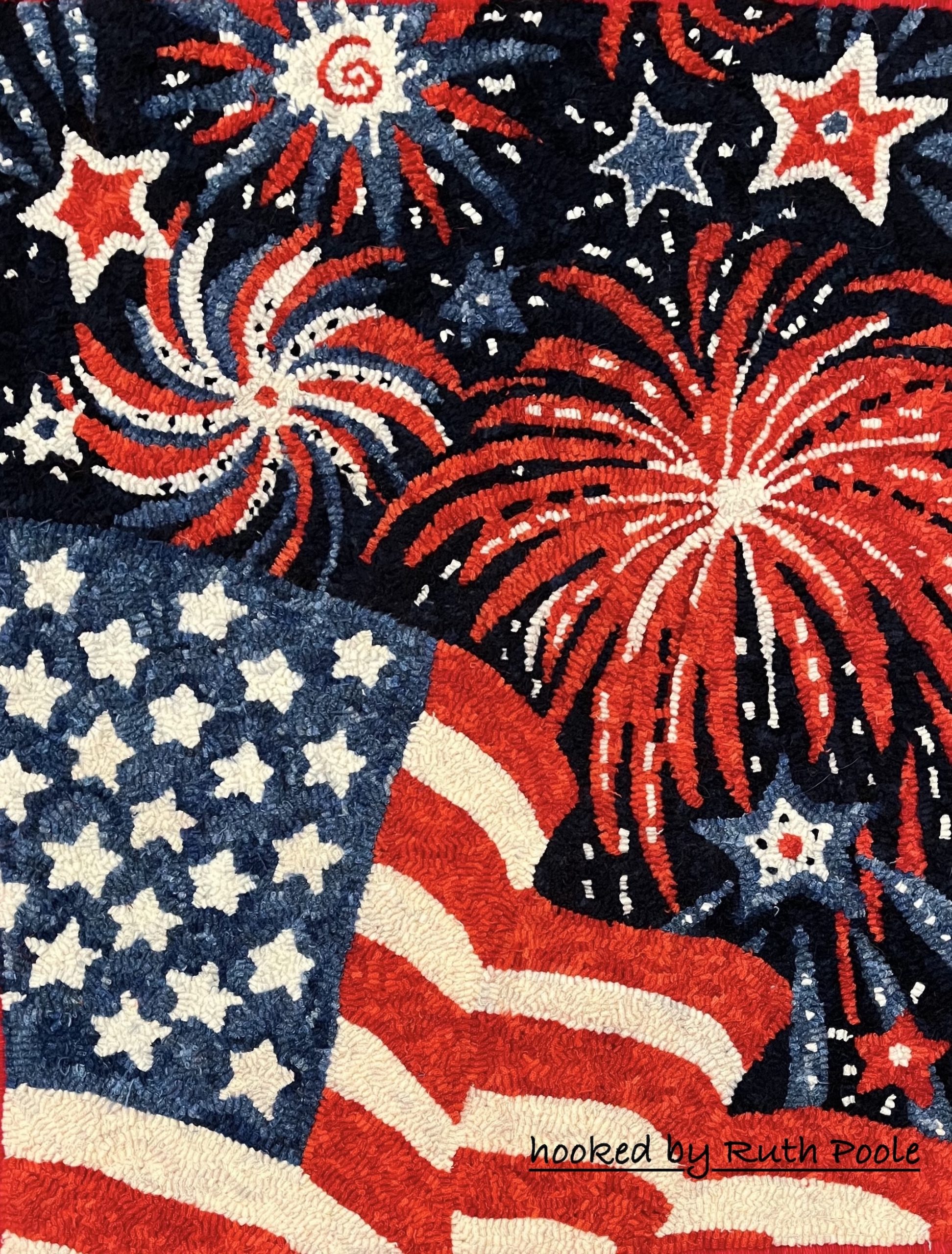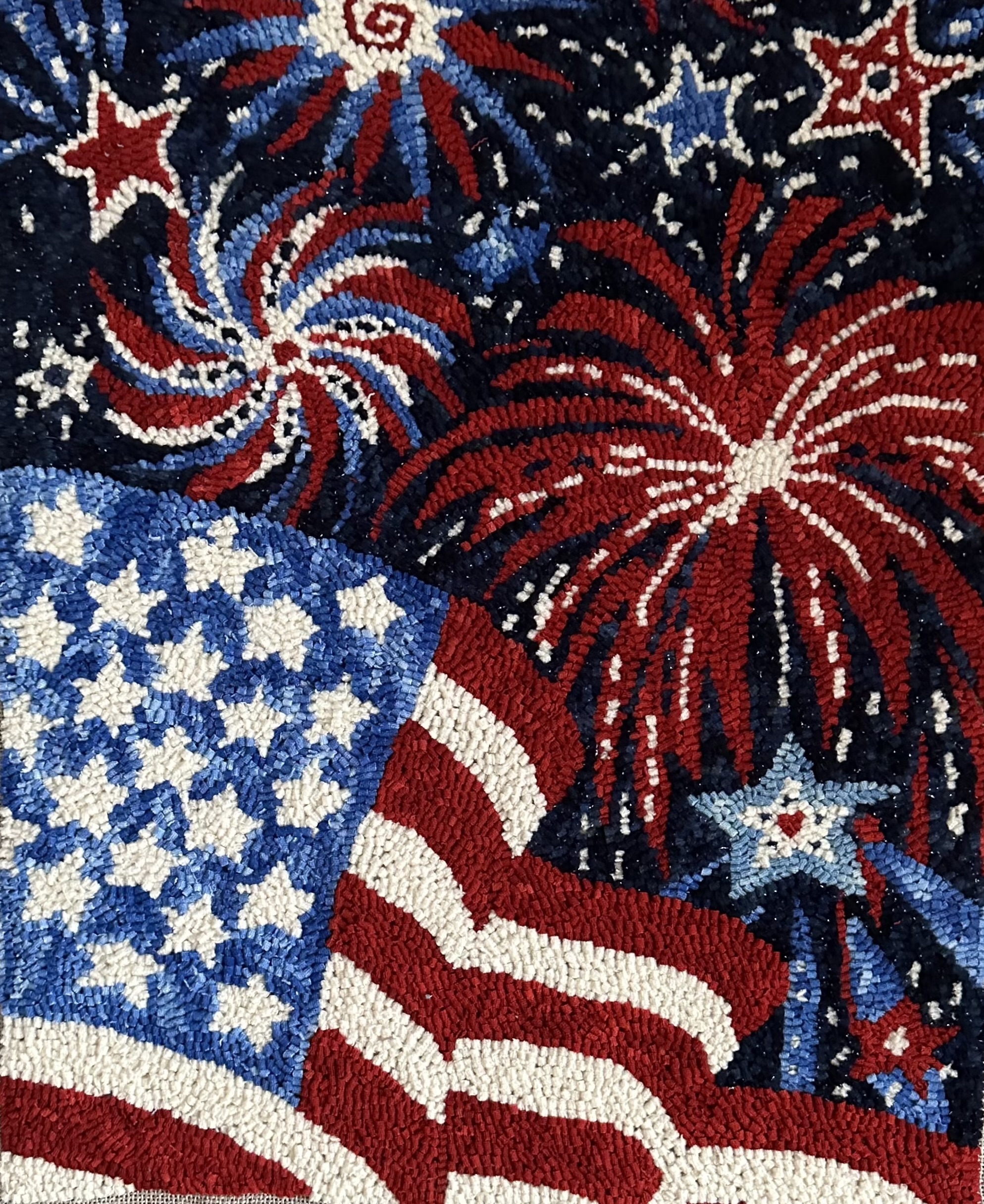 Celebration!, 18 x 22.5 – Great Summer Pattern! Wonderful Summer Celebratory Rug to hook in your favorite colors. Hang on your door, wall or as a table mat!