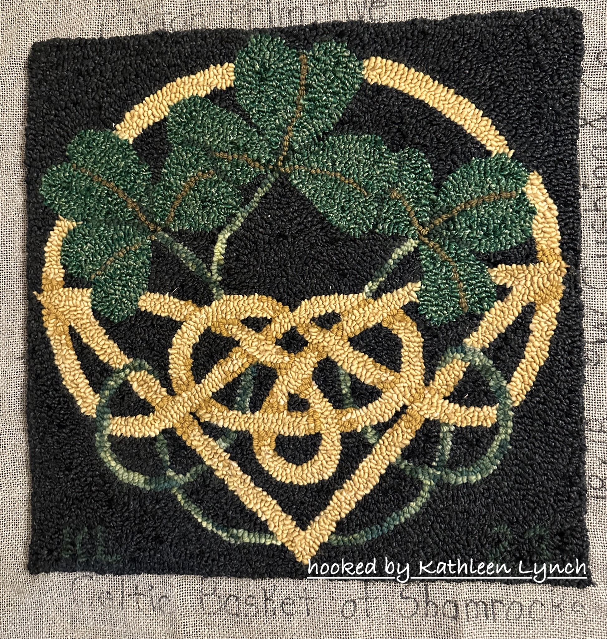The newest pattern in our Celtic Heritage Seriesis full of Luck—Celtic Basket of Shamrocks Rug Hooking Pattern, 18 x 18. The color ways are endless! You can combine wool and one of our velvets, use two velvets, make it Christmas, Fall or Winter! Each pattern will be printed WITHOUT an outside border on an 18 x 18 piece of linen so you can make it a pillow, table mat or candle mat. Embellishments are fun to add, such as Arctic Rays or Metallic Yarn for a 3D effect.