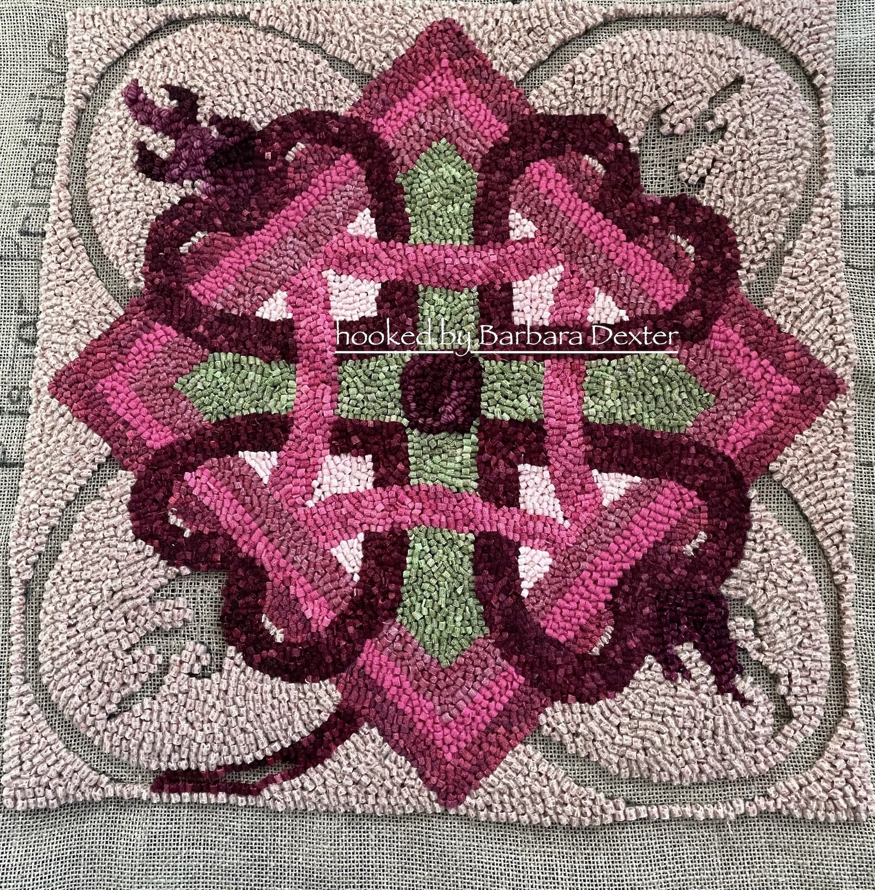 The newest pattern in our Celtic Heritage Series–Celtic Hearts A Fire, 18 x 18. The color ways are endless! You can combine wool and one of our velvets, use two velvets, great for the new bride as a ring bearer’s pillow! Order it on Monks and use your Oxford Punch to punch it! Embellishments are fun to add, such as Arctic Rays or Metallic Yarn for a 3D effect.