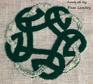 The newest pattern in our Celtic Heritage Series–Celtic Simple Wrap Wreath. 18 x 18. The color ways are endless! You can combine wool and one of our velvets, use two velvets, make it Christmas, Fall or Winter! Embellishments are fun to add, such as Arctic Rays or Metallic Yarn for a 3D effect. Each pattern will be printed WITHOUT an outside border on an 18 x 18 piece of linen so you can make it a pillow, table mat or candle mat