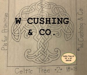 The newest pattern in our Celtic Heritage Series–Celtic Tree #2, 18 x 18. The color ways are endless! You can combine wool and one of our velvets, use two velvets, make it Christmas, Fall or Winter! Each pattern will be printed WITHOUT an outside border on an 18 x 18 piece of linen so you can make it a pillow, table mat or candle mat. Embellishments are fun to add, such as Arctic Rays or Metallic Yarn for a 3D effect.