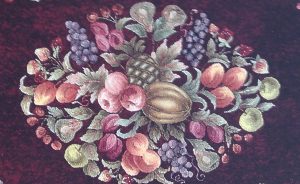 Ceres is a fabulous fruited rug pattern. This is for the CENTER ONLY, great piece by itself. OSV 566C 32″ x 43″. Fun to use velvet, metallics, burly spun yarns and your stash! Go light or dark for a background. Beautiful in any color scheme. Try our dip spots hand dyed wool for shading effects. We have a large variety of hand dyed wools for your fruit…Jacob’s Peach, Raspberry Burst, Vintage Gold, and Purple Passion to name a few. Mix Textured wool with Dyed wool for a complete look. Please click the link to view all our in-stock textures. https://dev.wcushing.com/product-category/textured-wool/