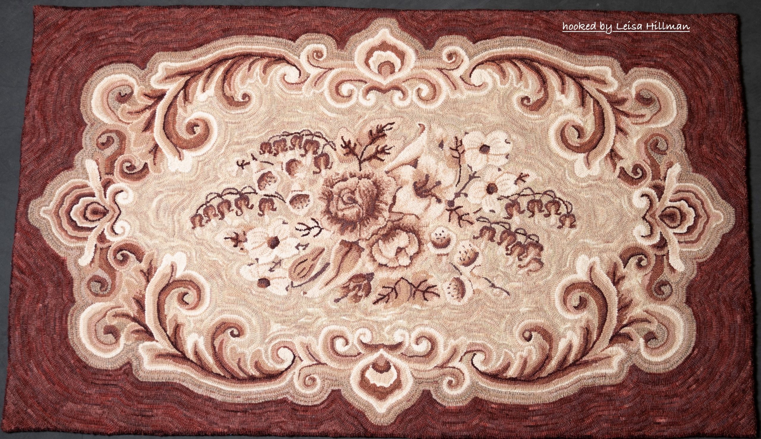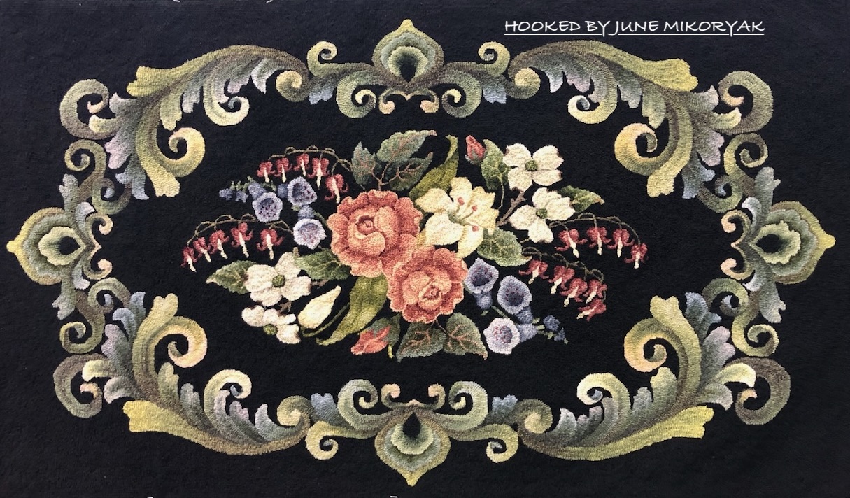 This wonderful floral pattern Challenge OSV 599 Pearl McGown Pattern 29″ x 49″. A beautiful vintage floral rug. Fun to use velvet, metallics, burly spun yarns and your stash! Go light or dark for a background. Beautiful in any color scheme. Try our dip spots hand dyed wool for shading effects. We have a large variety of hand dyed wools for your flowers…Jacob’s Peach, Raspberry Burst, Vintage Gold, and Purple Passion to name a few. Mix Textured wool with Dyed wool for a complete look. Please click the link to view all our in-stock textures. https://dev.wcushing.com/product-category/textured-wool/