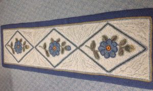 Charlotte’s Diamond, Ruth Hall Pattern 22″ x 73″, H958. Great rug to hook from a #4 to a #8 cut..the color ways are endless so start yours today! Fun to use velvet, metallics, burly spun yarns and your stash!