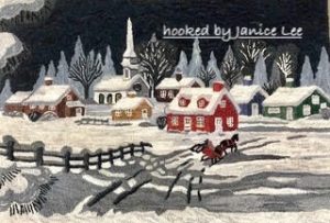 **we do not kit our patterns. *Our lovely example hooked by fiber artist Janice Lee, Betty Laub, Judy Privett, Serena Wakelin, Jenna Sleeper (who added a moon). And our gorgeous monotone work by Candice Bishop and Lisanne Miller