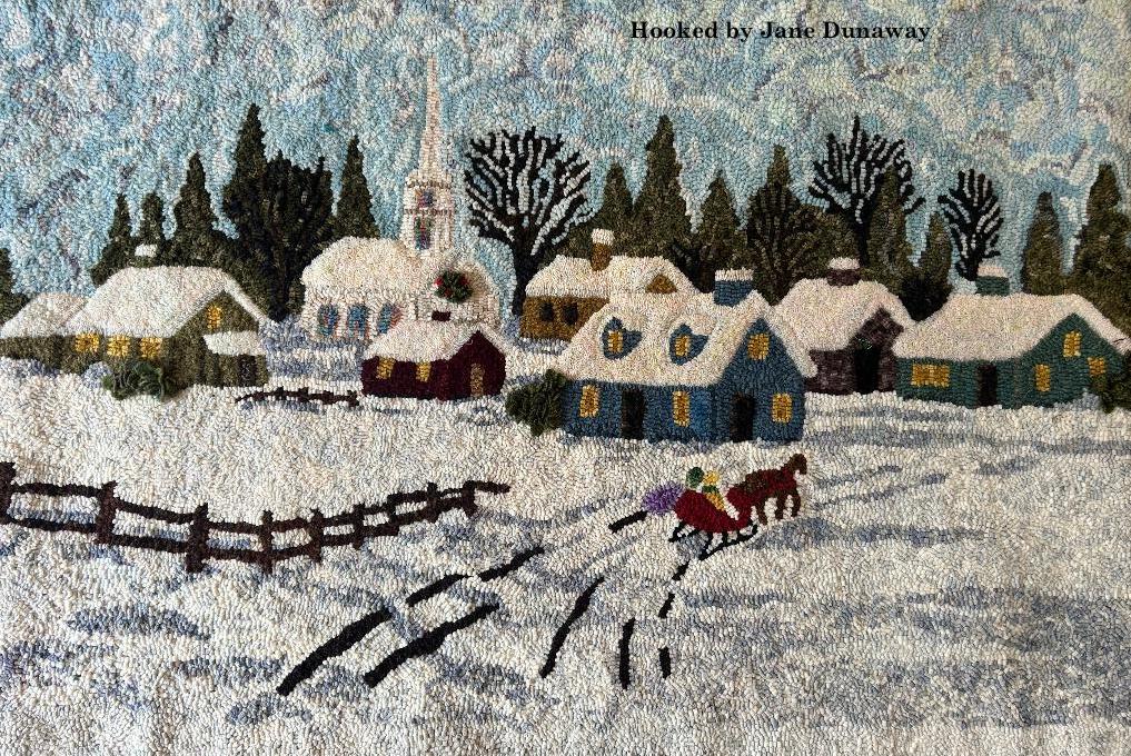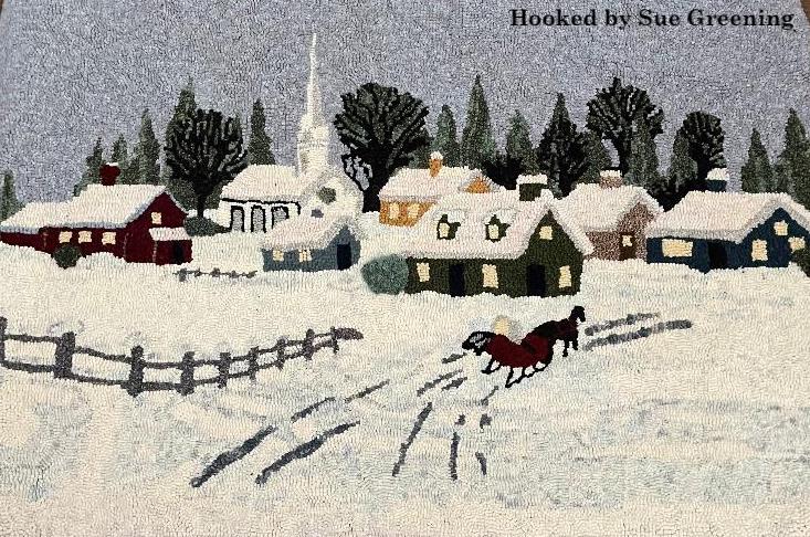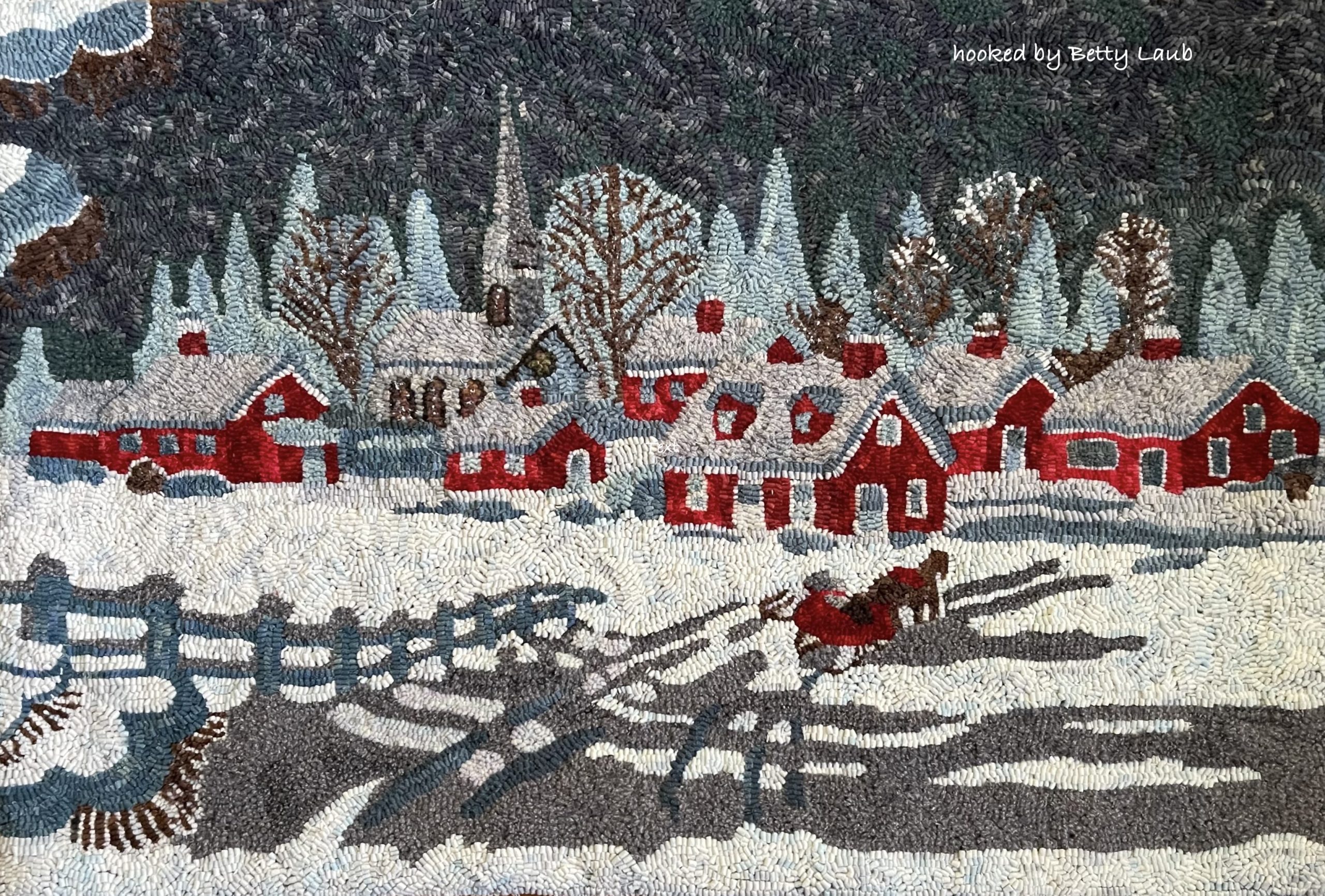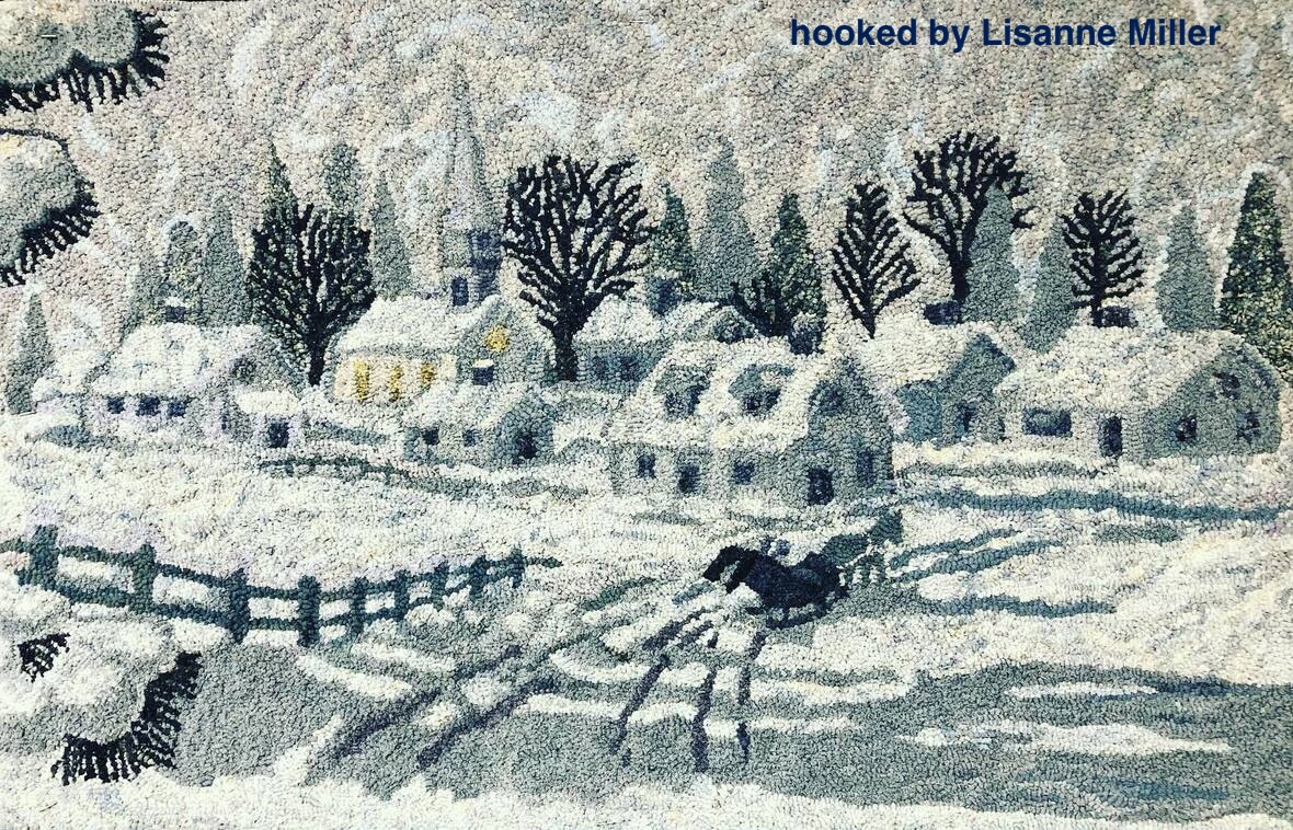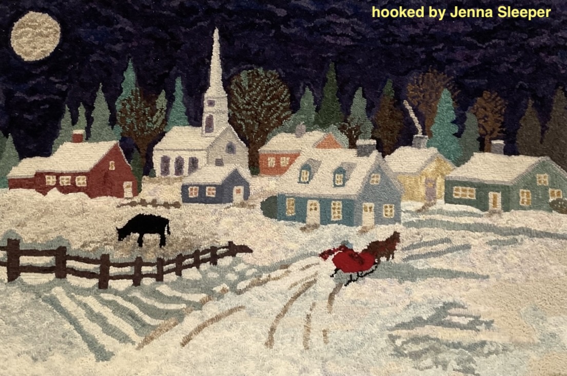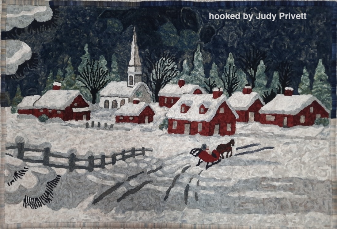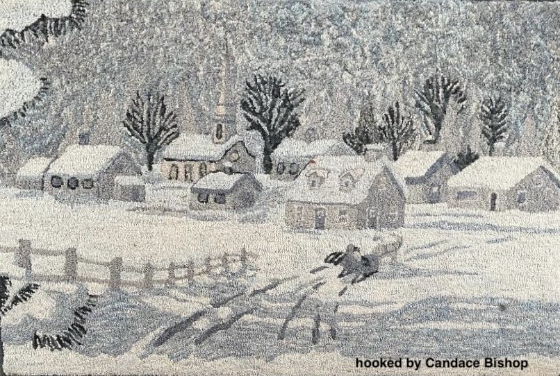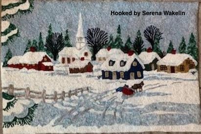 **we do not kit our patterns. *Our lovely example hooked by fiber artist Janice Lee, Betty Laub, Judy Privett, Serena Wakelin, Jenna Sleeper (who added a moon). And our gorgeous monotone work by Candice Bishop and Lisanne Miller
