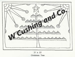 Christmas Tree, pattern by Primitive Grace, 31″ x 22″. What a great holiday pattern! Fun to use velvet, metallics, burly spun yarns and your stash! A good pattern to be creative with. Make your border colorful or plain…background light or dark…a lot of choices! Some great dyed wools, try Imari Gold, Imari Jade and Emerald. You can also use Arctic Rays and Roving as embellishments for your rug. Mix Textured wool with Dyed wool for a complete look. Please click the link to view all our in-stock textures. https://dev.wcushing.com/product-category/textured-wool/