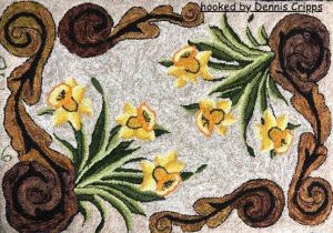 Daffodils M128, 25 x 36 inches Joan Moshimer Pattern. So many colors you can use! Our Dyed wool will surely help make it pop! Check out Dawn, Gardens for Storybook, Flower Power, Yellow Topaz or Blossom from our dyed wool. Embellishments are fun to add, such as Arctic Rays or Metallic Yarn for a 3D effect.