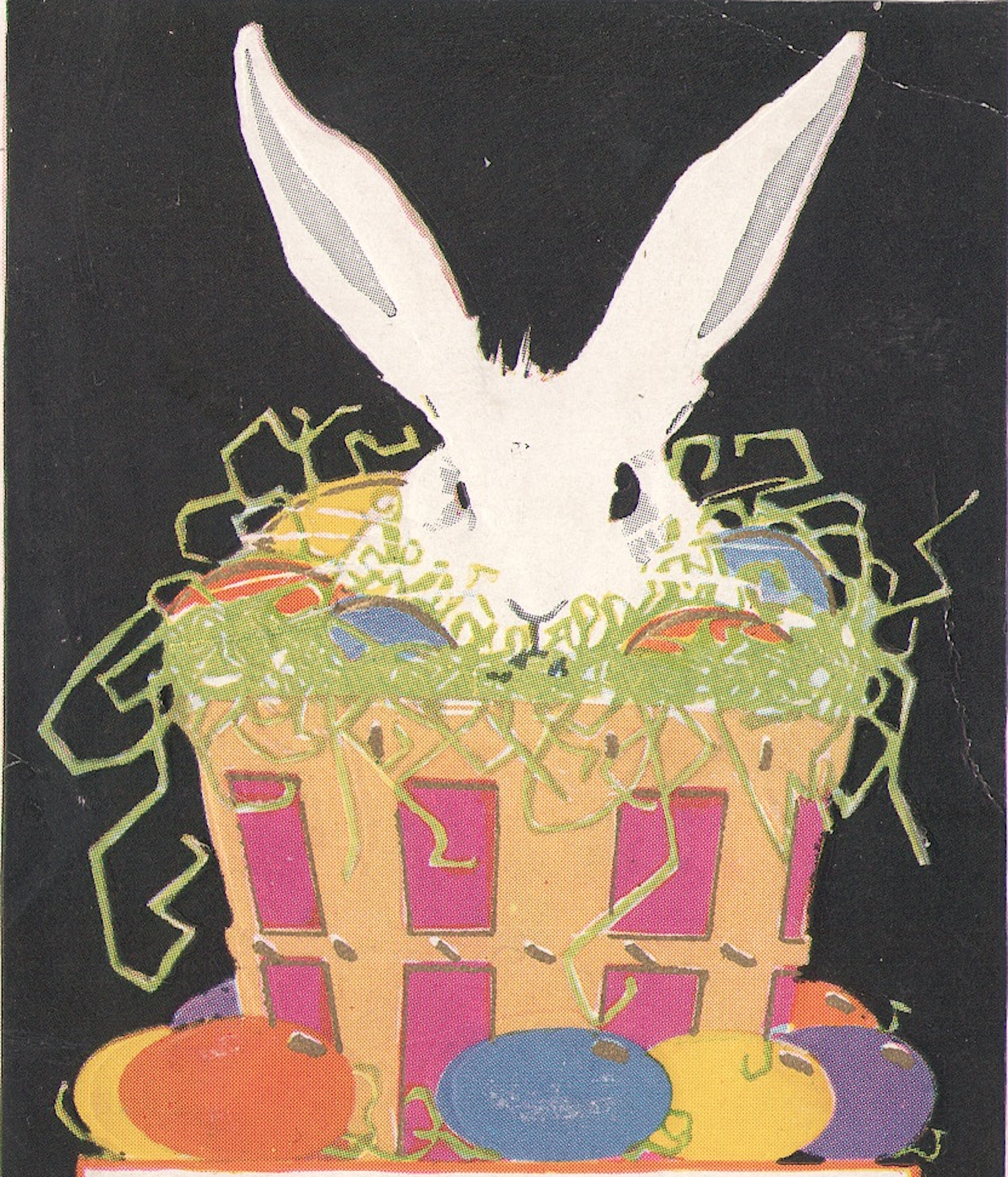 Deco Easter Bunny, Rug Hooking Pattern ONLY, 18 x 15, Vintage Postcard Pattern From Joan Moshimer’s Studio