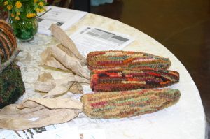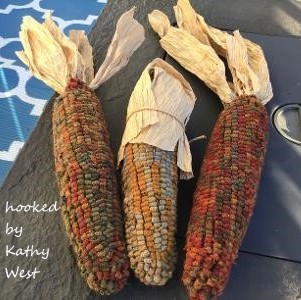 Dimensional Corn pattern by P is for Primitive. This pattern is on your choice linen with edges serged. A good way to use up your stash too! Embellishments are fun to add, such as Arctic Rays or Metallic Yarn for a 3D effect.