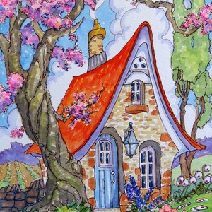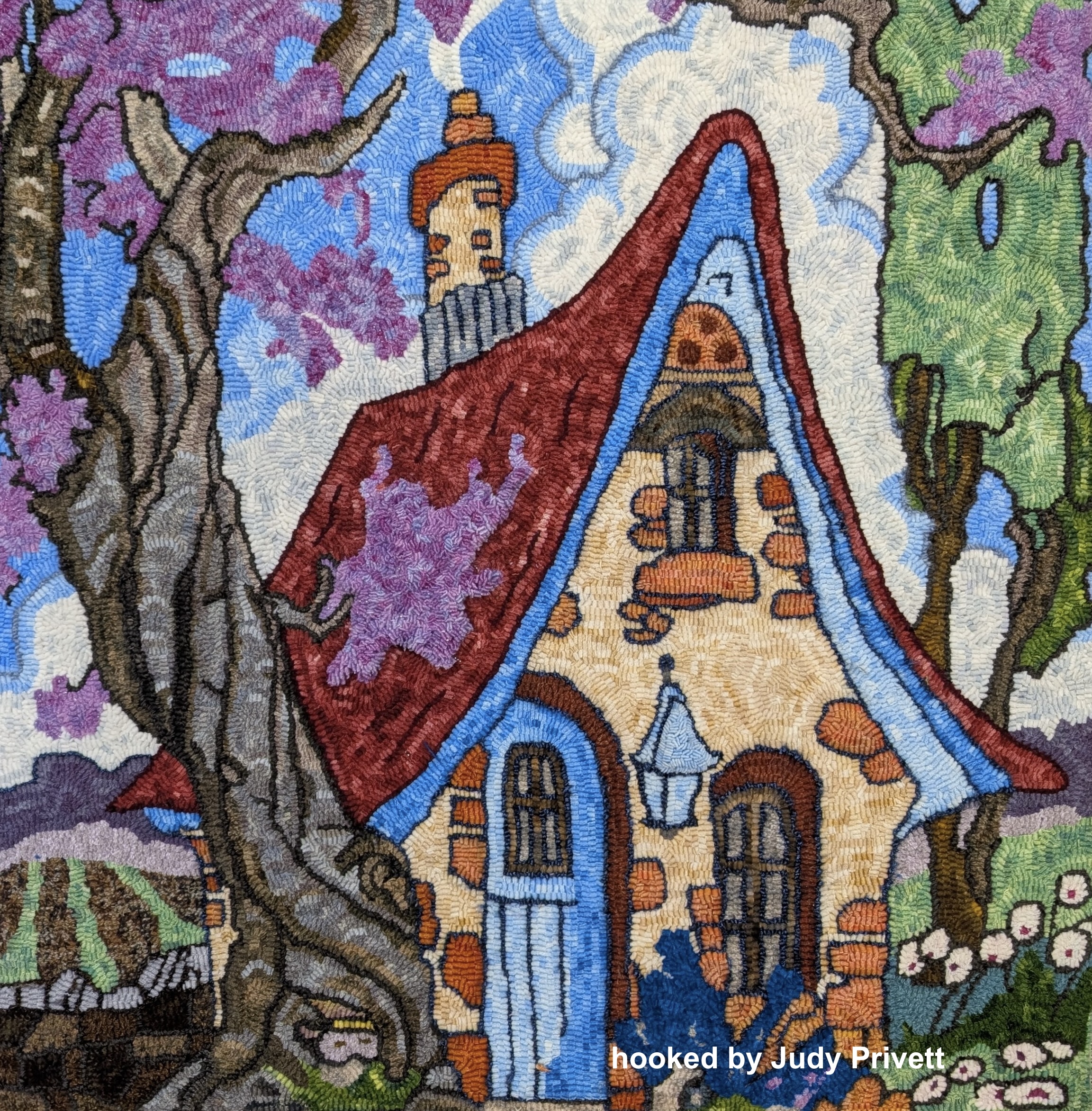 Divinely Downsized Cottage, 26 x 26, based on the artwork of Alida Akers…Part of the Storybook Cottage Series. Embellishments are fun to add, such as Arctic Rays or Metallic Yarn for a 3D effect.