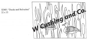 Ducks and Bulrushes Pattern by Salma Dhanji SD601 22 x 33 inches . A great primitive pattern to get creative with. Fun to use velvet, metallics, burly spun yarns and your stash!