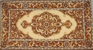 Empress by Pearl McGown OSV 704 38″ x 72″ is a fabulous Oriental rug pattern, great to use our dip spots for the scrolls. Embellishments are fun to add, such as Arctic Rays or Metallic Yarn for a 3D effect. Suggested dyed wools are Vinca Vine, Kaleidoscope, Twinkle, Grassy Greens and more! Mix Textured wool with Dyed wool for a complete look.