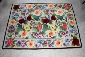 The colorful and beautiful hooked piece was done by Carol LaChance