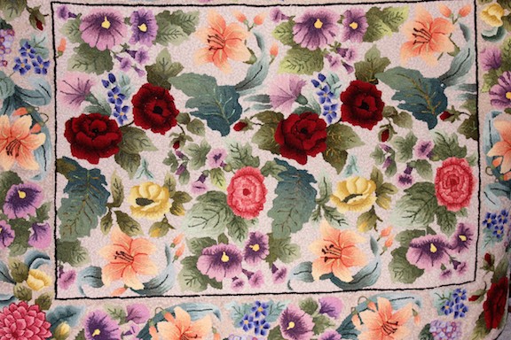The colorful and beautiful hooked piece was done by Carol LaChance