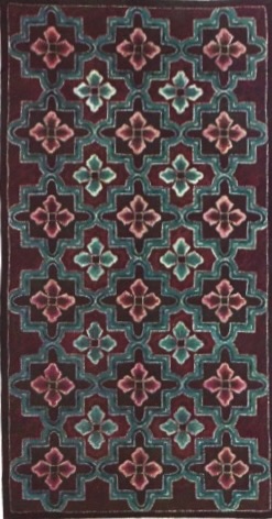**we do not kit our patterns. Please Note–the photos of this rug is from the book COLOR IN HOOKED RUGS, by Pearl K. McGown, it was hooked by Edna Fleming. Another example by Pam Landry
