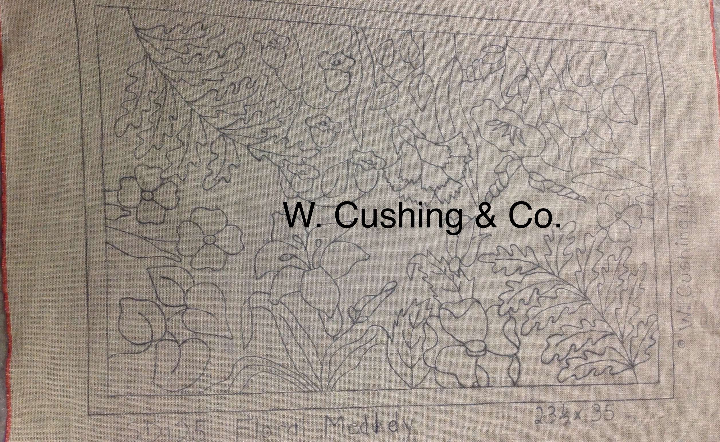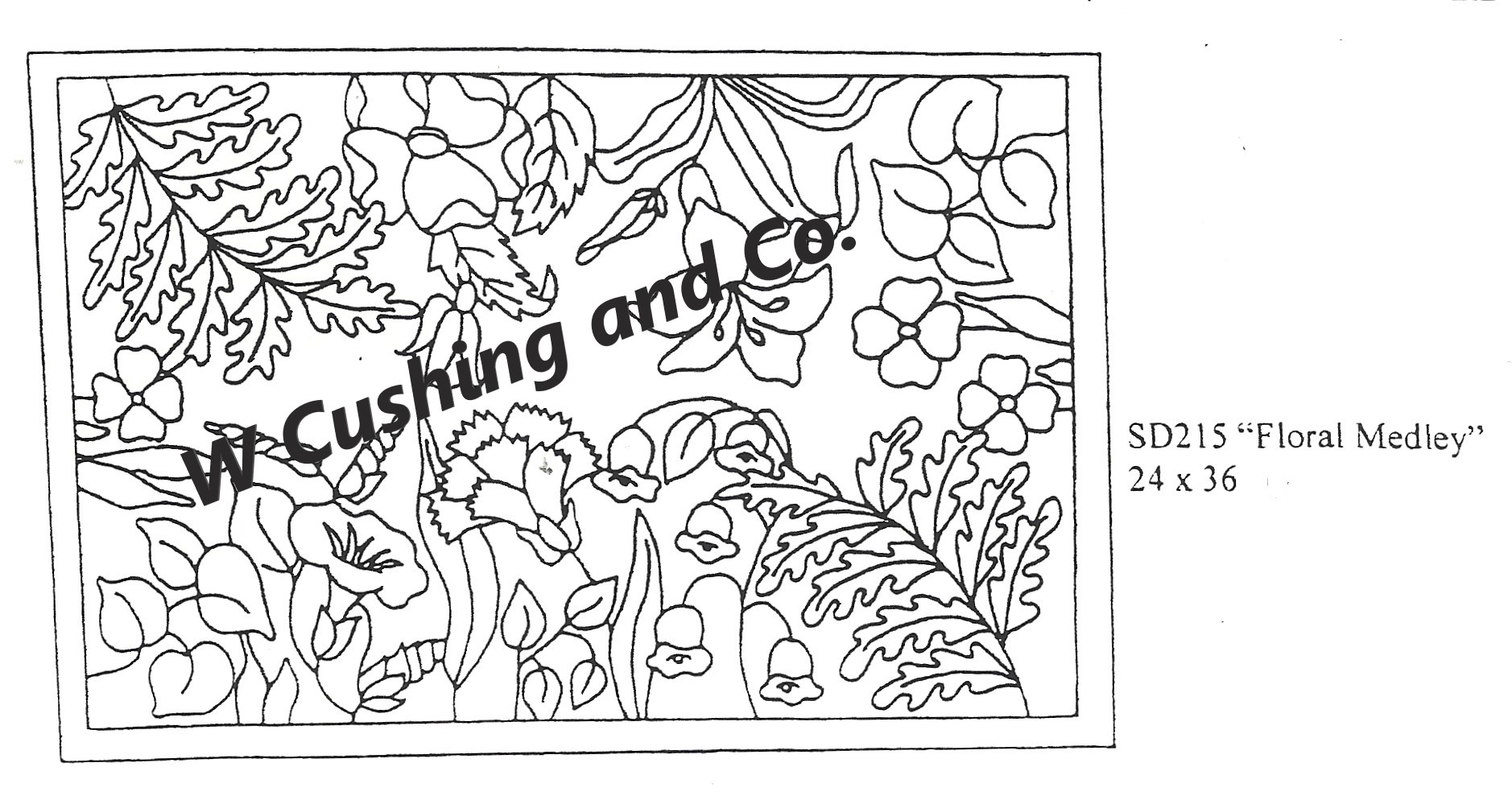 Floral Medley Great piece to hook in your favorite colors. . .for your own garden rug. A Salma Dhanji Pattern, 23 1/2 x 35 SD215. Embellishments are fun to add, such as Arctic Rays or Metallic Yarn for a 3D effect. Try Cupids Blush, Periwinkle Pop, Better Than Roses, Hydrangea and more from our dyed wools. Mix Textured wool with Dyed wool for a complete look. Please click the link to view all our in-stock textures. https://dev.wcushing.com/product-category/textured-wool/