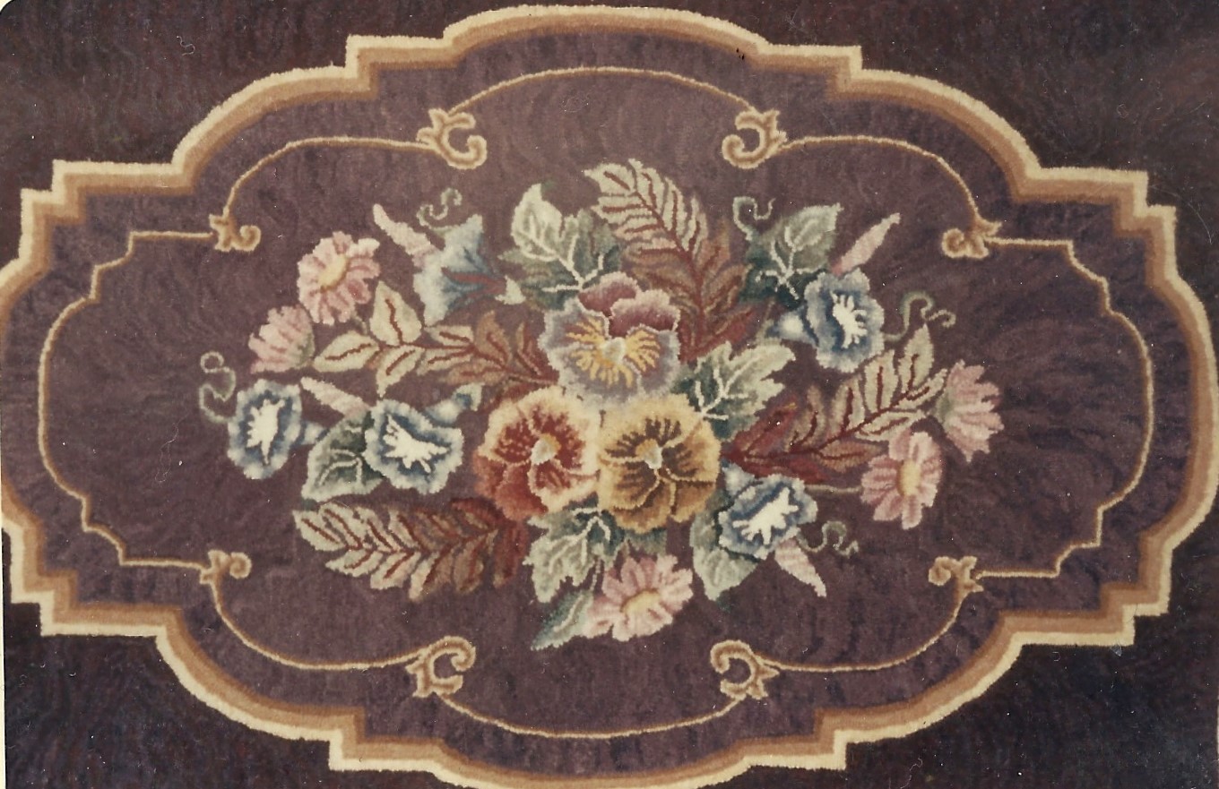 This beautiful floral pattern is called Floral Tray by Pearl McGown OSV 600 38″ x 42″. It is a beautiful floral that embellishments are fun to add, such as Arctic Rays or Metallic Yarn for a 3D effect. Try our dip spots hand dyed wool for shading effects. We have a large variety of hand dyed wools for your rug such as Imari Gold, Jacob’s Peach, Zinnia Garden, Deep Purple and more!