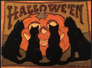 Four Tails of Halloween 24″ x 36″, Vintage Postcard Pattern From Joan Moshimer’s Studio