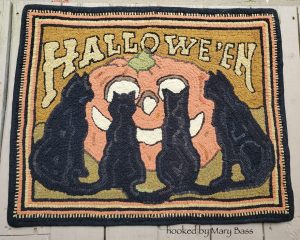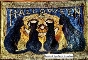 Four Tails of Halloween, Vintage Postcard Inspired, 24 x 36 on unbleached linen. *Embellishments such as Arctic Rays, Fur, Roving, Burly Spun or Metallic Yarn for a 3D effect to add to your pattern! Great pattern in any color. A great Vintage Postcard for the fiber lover!