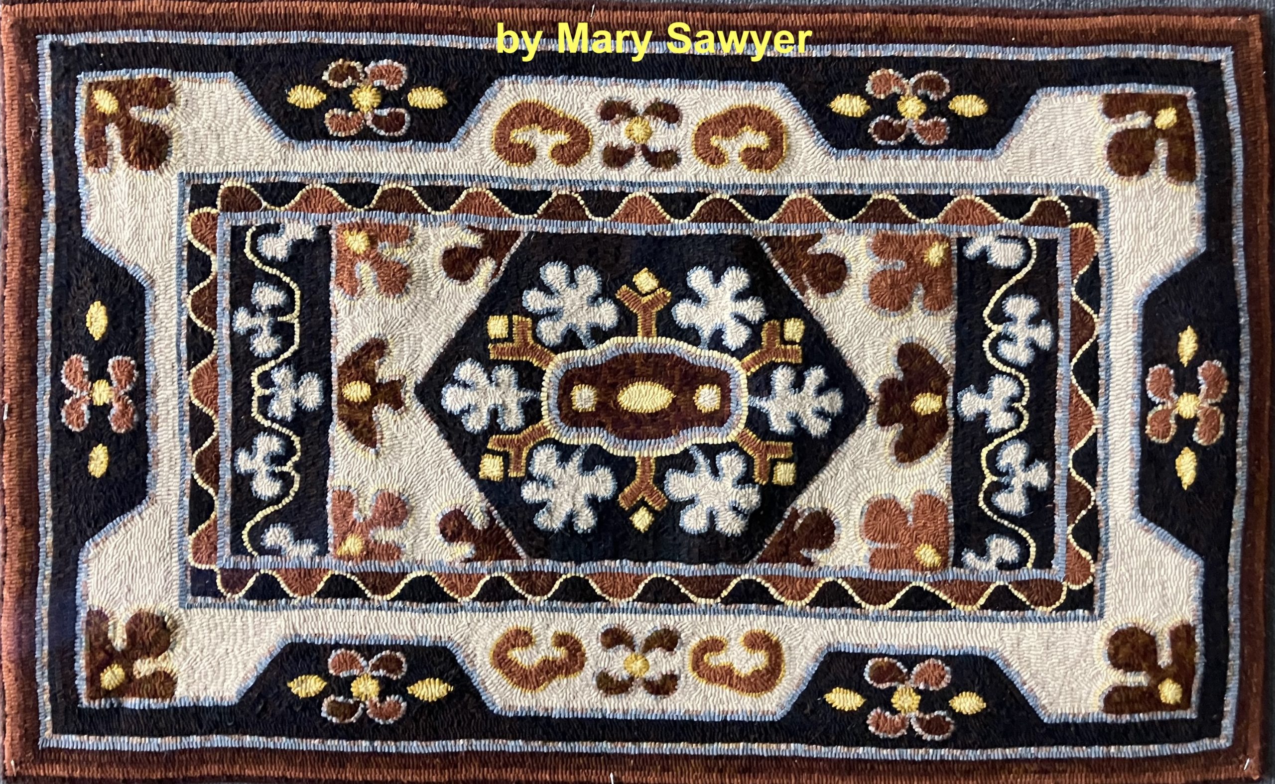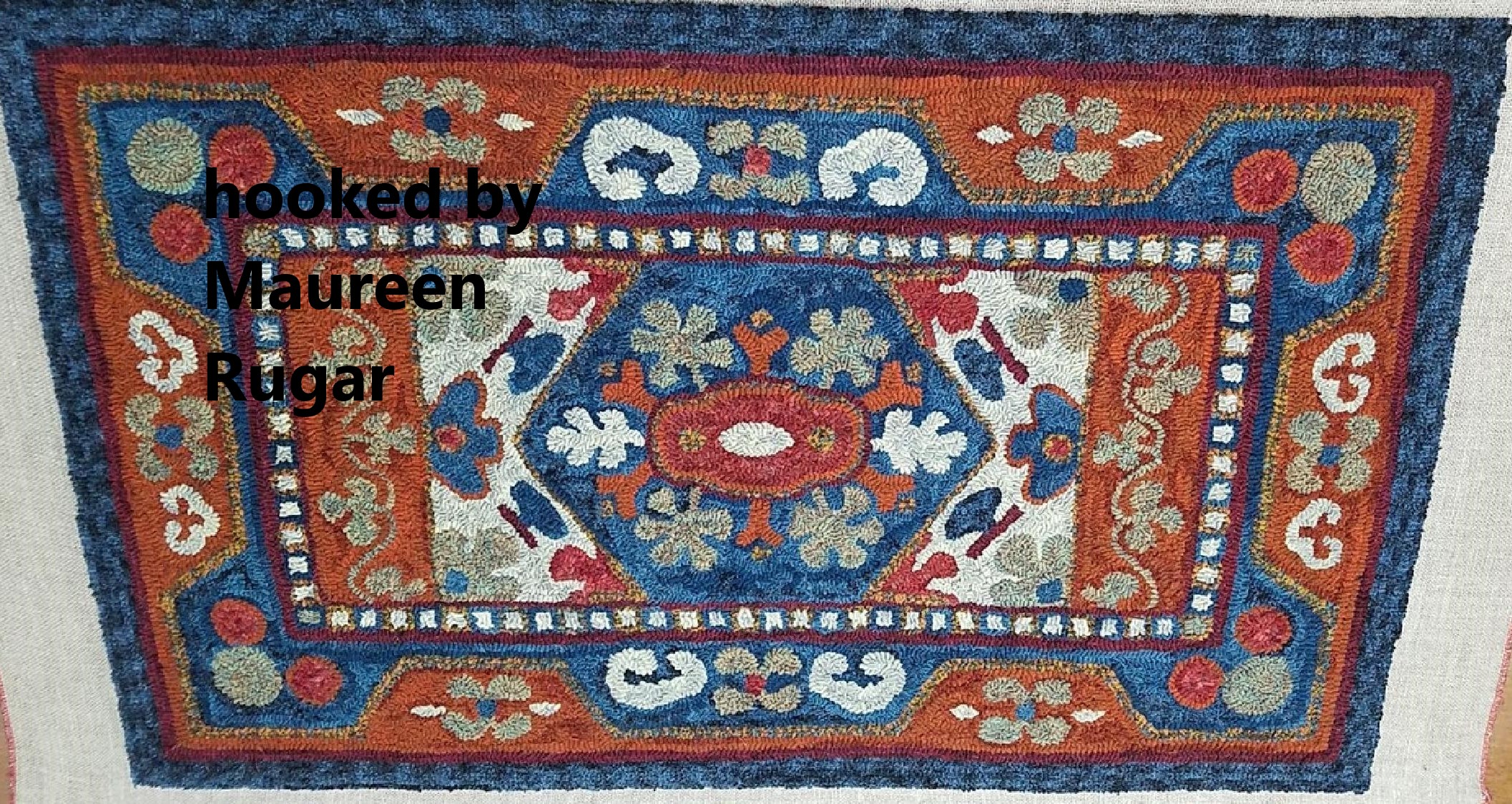 This beautiful Oriental pattern is Frost (small) Oriental by Pearl McGown, OSV 230, 27″ x 45″. This pattern is available in another size–see listing. *Embellishments such as Arctic Rays, Fur, Roving, Burly Spun or Metallic Yarn for a 3D effect to add to your pattern!
