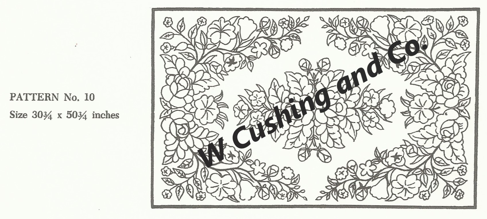 Frost’s Pattern No. 10, 30 3/4″ x 50 3/4″, GV 10. A wonderful large floral rug pattern! Fun to use velvet, metallics, burly spun yarns and your stash! Any color scheme will work! Check out Better Than Roses, Emerald, Fields of Color and more from our dyed wools…Mix Textured wool with Dyed wool for a complete look. Please click the link to view all our in-stock textures. https://dev.wcushing.com/product-category/textured-wool/