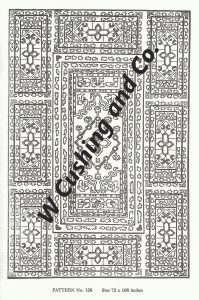 Frost’s Pattern No. 128, 72″ x 108″, GV 128. A great rug to be creative with. Any color scheme would be beautiful. A true classic oriental from late 1800’s- early 1900’s time period. We offer hand dyed wools such as Garnet, Yellow Topaz, Misty and more. Mix Textured wool with Dyed wool for a complete look. Please click the link to view all our in-stock textures. https://dev.wcushing.com/product-category/textured-wool/